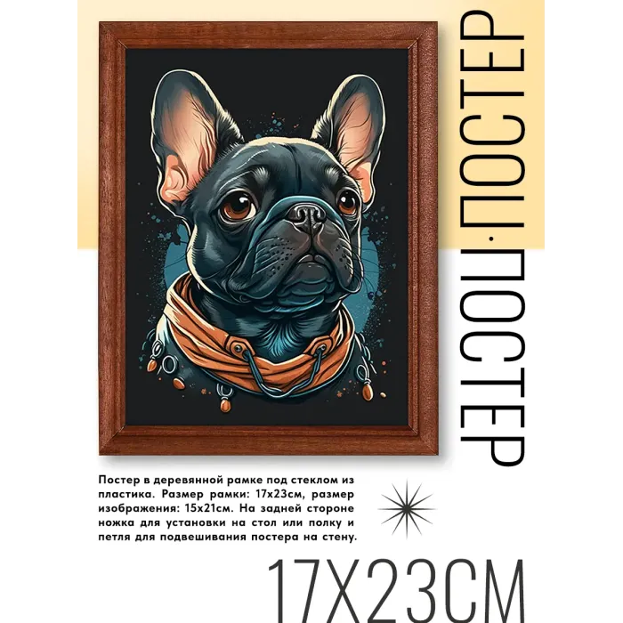 Постер в рамке 17х22см Мопс POSV-0297