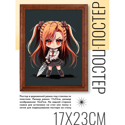 Постер в рамке для интерьерного декора. Деревянная рамка с пластиковым стеклом и изображением в аниме-стиле.
