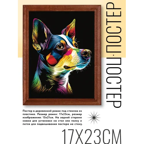 Постер в рамке с изображением собаки для интерьерного декора. Рамка деревянная, изображение защищено пластиковым стеклом.