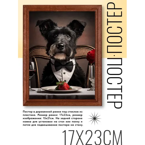 Постер в рамке с изображением собаки. Деревянная рамка с пластиковым стеклом и двумя вариантами установки.