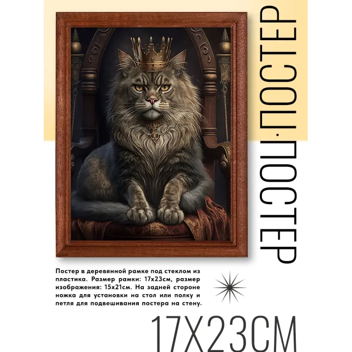 Постер в рамке для настольного или настенного размещения. Деревянная рамка с пластиковым стеклом и изображением кота.