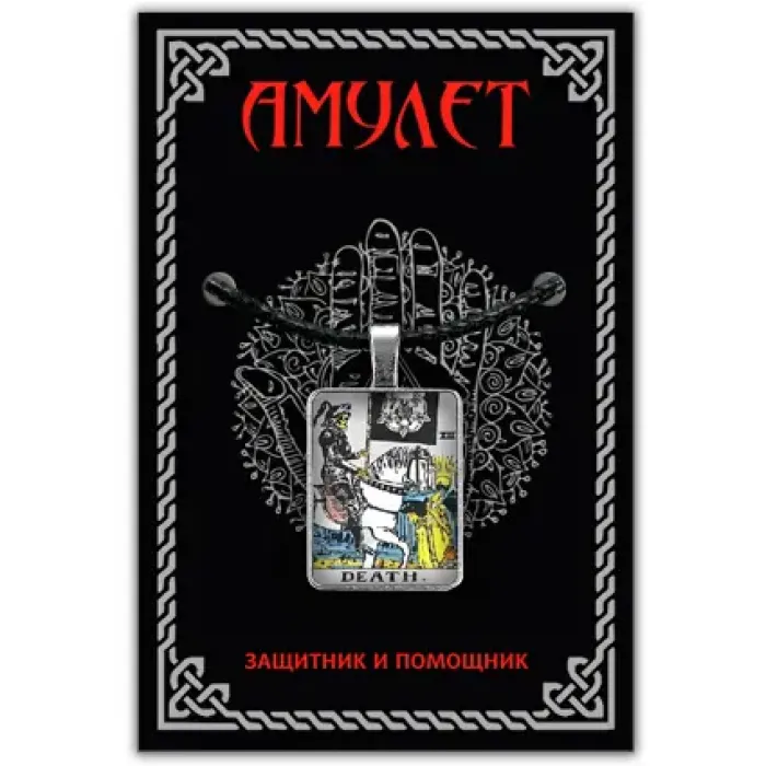 Сувенирный амулет в виде кулона с объёмной стеклянной линзой и изображением аркана Таро «Смерть».