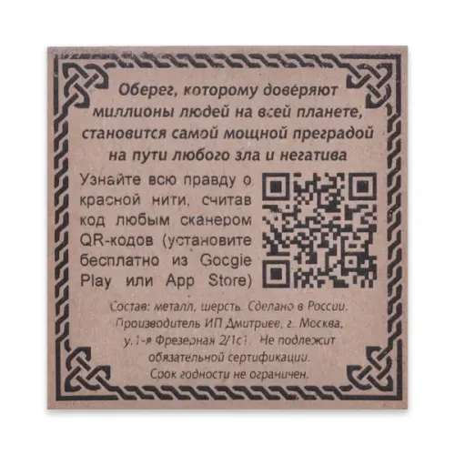 - Комплектация включает вкладыш с описанием значимости браслета.