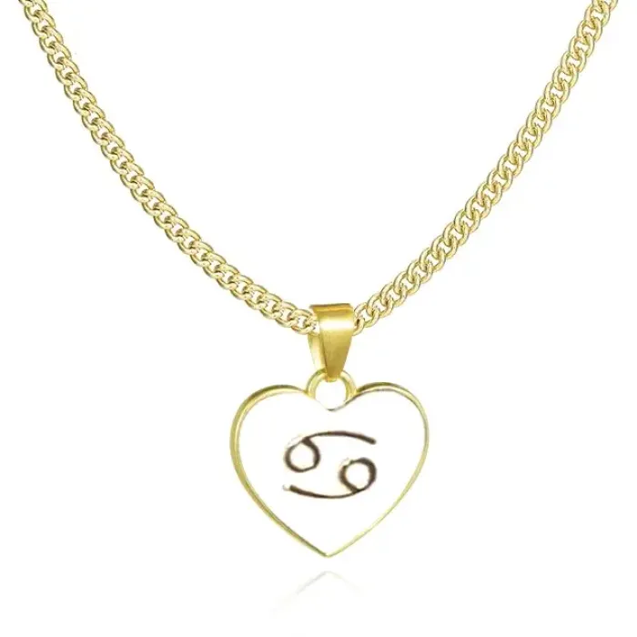 Кулон в виде сердца с символом знака зодиака Рак. Изготовлен из бижутерного сплава с покрытием под золото и эмалью.