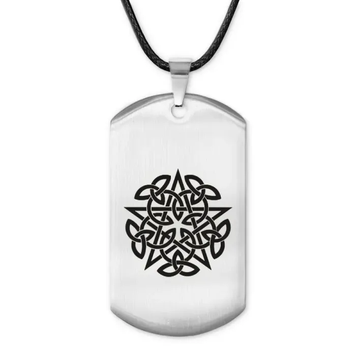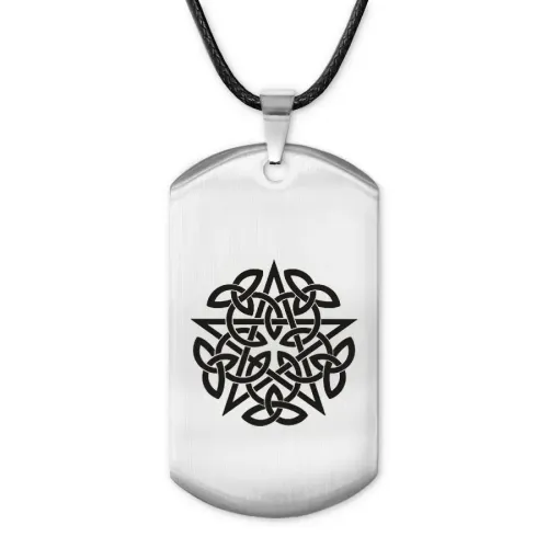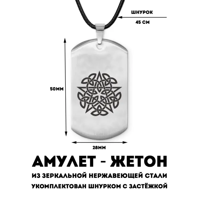 Амулет-жетон из полированной нержавеющей стали с лазерной гравировкой пентаграммы.
