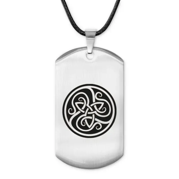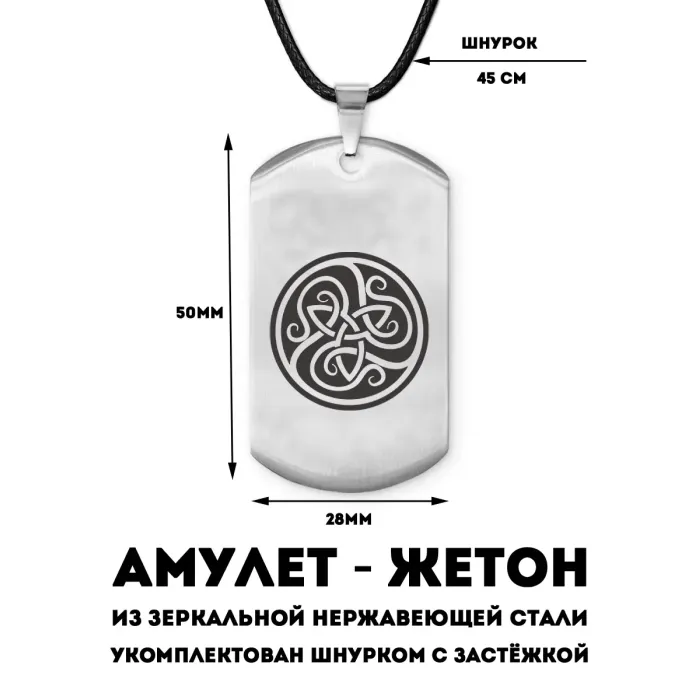 Амулет-жетон с символом трикветр из полированной нержавеющей стали с лазерной гравировкой.