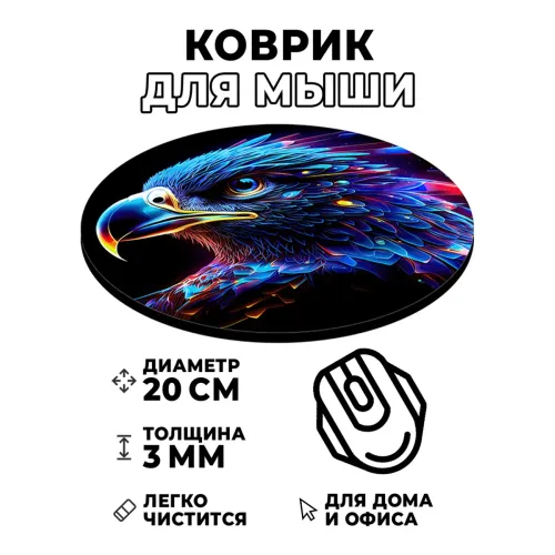 Коврик для компьютерной мыши с изображением орла станет не только практичным аксессуаром, но и стильным элементом рабочего пространства. Этот коврик диаметром 20 см и толщиной 3 мм обеспечивает отличное скольжение мышки благодаря качественным материалам. Изображение отличается стойкостью, чёткостью и контрастностью, что добавляет эстетическую привлекательность. Такой коврик идеально подходит как для работы, так и для игр, создавая комфортные условия при использовании компьютера.