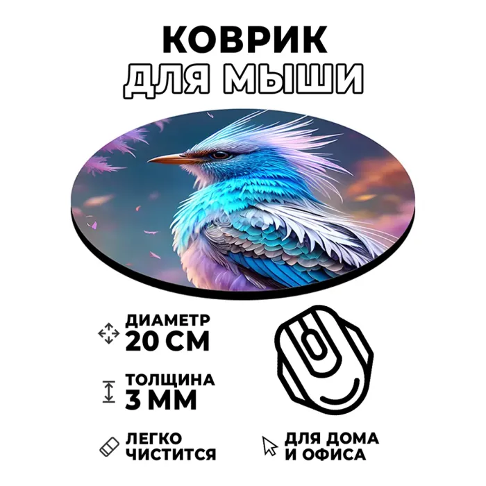 Коврик для компьютерной мыши с изображением птицы — это не только практичный аксессуар, но и стильный элемент рабочего пространства. Он обладает диаметром 20 см и толщиной 3 мм, что обеспечивает комфортное использование в течение долгого времени.