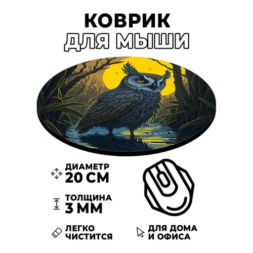 Коврик для мыши с изображением совы станет ярким акцентом на рабочем месте и обеспечит комфорт во время работы за компьютером. Этот коврик диаметром 20 см и толщиной 3 мм предлагает отличное скольжение мышки, что способствует повышению продуктивности. Изображение отличается стойкостью, четкостью и контрастностью, что добавляет эстетическую привлекательность. Идеален как для офисного использования, так и для домашнего компьютера.