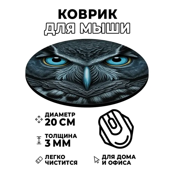 Коврик для мыши с изображением совы — это не только практичный аксессуар, но и стильный элемент рабочего пространства. Он символизирует мудрость и внимательность, что делает его отличным подарком для студентов и профессионалов.