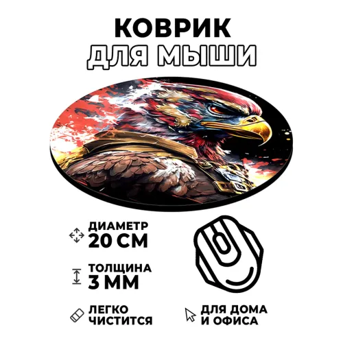 Коврик для компьютерной мыши с изображением орла — это не только практичный аксессуар, но и стильный элемент рабочего пространства. Он создан для комфортного использования и добавляет уникальности любому интерьеру.