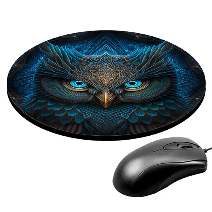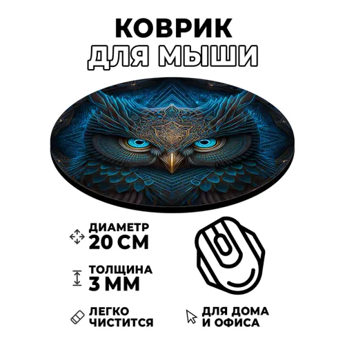Коврик для мыши с изображением совы — это не только практичный аксессуар, но и стильный элемент декора рабочего места. Он обладает стойким и четким изображением, которое придаёт яркость и индивидуальность любому интерьеру.