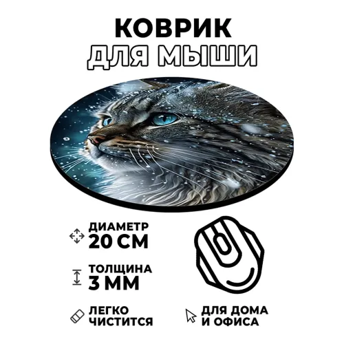 Коврик для компьютерной мыши с изображением кошки станет стильным акцентом рабочего места. Его диаметр составляет 20 см, а толщина — 3 мм, что обеспечивает комфортное использование. Изображение отличается стойкостью и четкостью, придавая коврику яркость и контрастность. Отличные характеристики скольжения гарантируют легкость в управлении мышкой, что особенно важно для длительной работы или игр за компьютером. Этот коврик не только функционален, но и добавляет индивидуальность в обстановку.