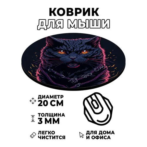 Коврик для компьютерной мыши с изображением "Чёрный кот" станет стильным дополнением рабочего места. Он не только украшает пространство, но и обеспечивает комфорт при использовании мышки благодаря хорошему скольжению.