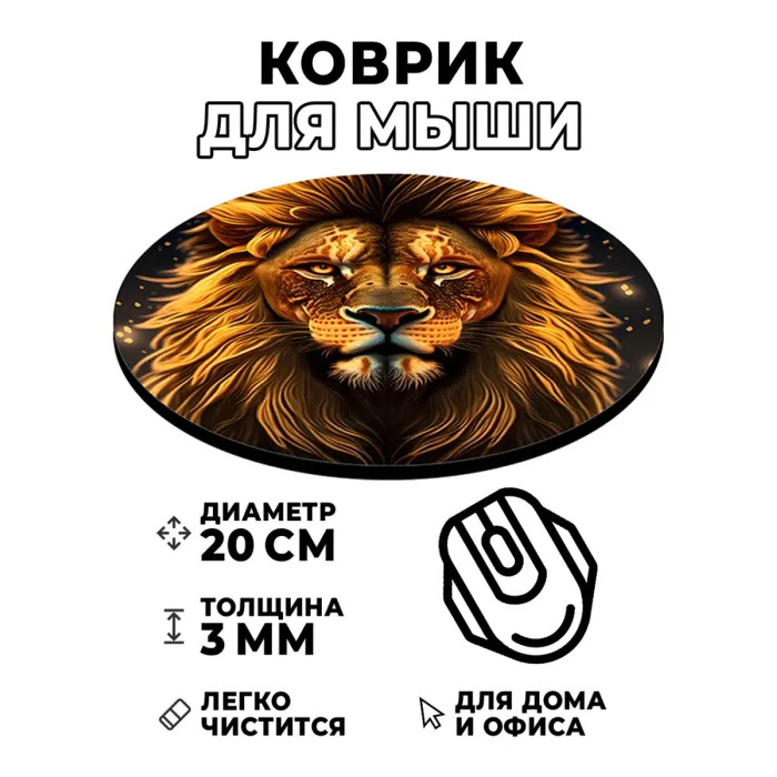 Коврик для компьютерной мыши с изображением льва — это не только практичный аксессуар, но и стильный элемент рабочего пространства. Он обладает стойким, четким и контрастным изображением, которое добавляет индивидуальности любому интерьеру.