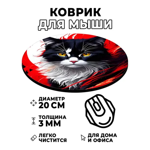 Коврик для мыши с изображением кота станет стильным дополнением рабочего пространства и подарит уют в повседневной работе. Этот коврик диаметром 20 см и толщиной 3 мм обеспечивает отличное скольжение компьютерной мышки, что делает его идеальным выбором как для офисного использования, так и для домашнего компьютера.