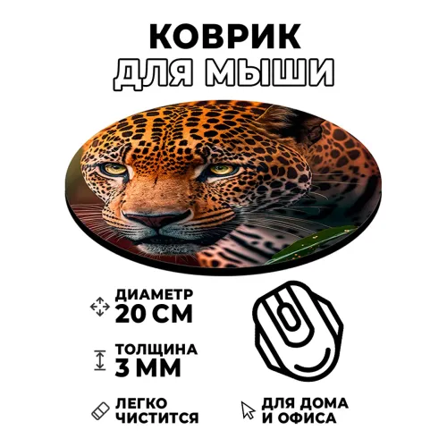 Коврик для компьютерной мыши с ярким изображением леопарда станет стильным дополнением рабочего пространства. Он не только привлекает внимание, но и обеспечивает комфорт во время работы или игр.