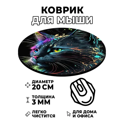 Коврик для компьютерной мыши с изображением кошки станет стильным дополнением рабочего места. Он не только украшает пространство, но и обеспечивает комфорт при использовании мышки. Изображение на коврике отличается стойкостью, четкостью и контрастностью, что делает его привлекательным элементом декора.