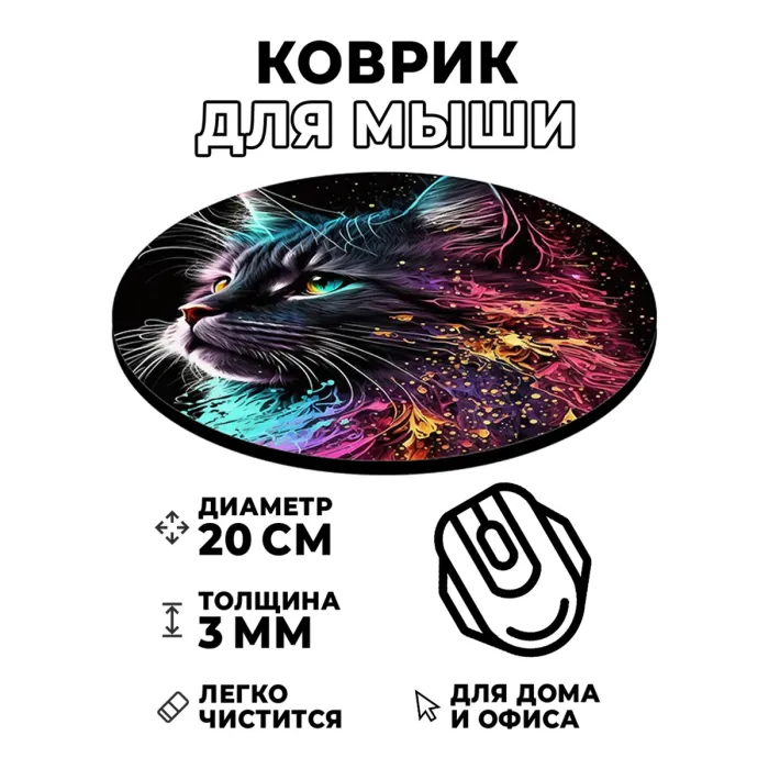 Коврик для компьютерной мыши с изображением кошки — это не только стильный аксессуар, но и практичное решение для комфортной работы. Он станет отличным дополнением к любому рабочему месту и порадует любителей животных.