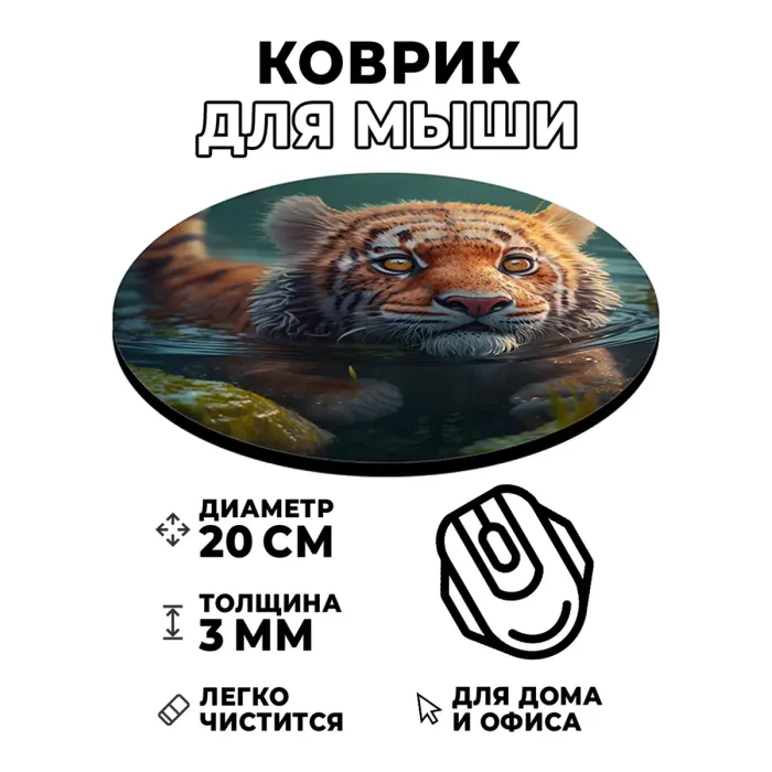Коврик для мыши с изображением тигрёнка — это не только стильный аксессуар, но и практичное решение для комфортной работы за компьютером. Он станет ярким акцентом на рабочем столе и добавит немного игривости в повседневные задачи.