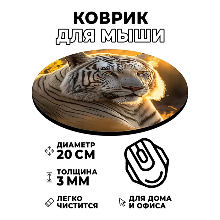 Коврик для компьютерной мыши с изображением белого тигра станет ярким акцентом на рабочем месте. Он не только привлекает внимание, но и обеспечивает комфортное использование благодаря своим характеристикам.