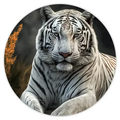 - Изображение белого тигра выполнено с высокой четкостью и контрастностью, что добавляет яркости и оригинальности.