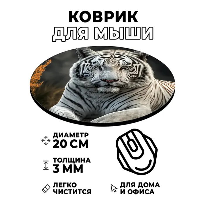 Коврик для компьютерной мыши с изображением белого тигра — это не только практичный аксессуар, но и стильный элемент рабочего пространства. Он сочетает в себе функциональность и эстетическую привлекательность, создавая уникальную атмосферу при работе за компьютером.