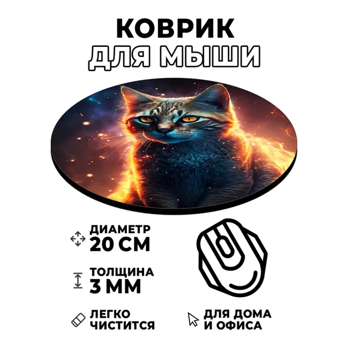 Коврик для компьютерной мыши с изображением кота станет стильным дополнением рабочего места и подарит уют в каждом моменте работы за компьютером. С диаметром 20 см и толщиной 3 мм, он идеально подходит для комфортного использования. Стойкое, четкое и контрастное изображение радует глаз, а хорошее скольжение мышки обеспечивает плавность движений. Такой коврик не только функционален, но и добавляет индивидуальности в интерьер.