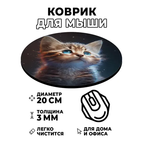 Коврик для компьютерной мыши с изображением котёнка добавит яркие эмоции в рабочее пространство. Имеет диаметр 20 см и толщину 3 мм, что обеспечивает комфортное использование. Изображение отличается стойкостью и четкостью, а также контрастностью, что делает его привлекательным дополнением к любому столу. Благодаря качественной поверхности обеспечивается отличное скольжение мышки, что повышает эффективность работы за компьютером. Этот коврик станет не только практичным аксессуаром, но и стильным элементом интерьера.