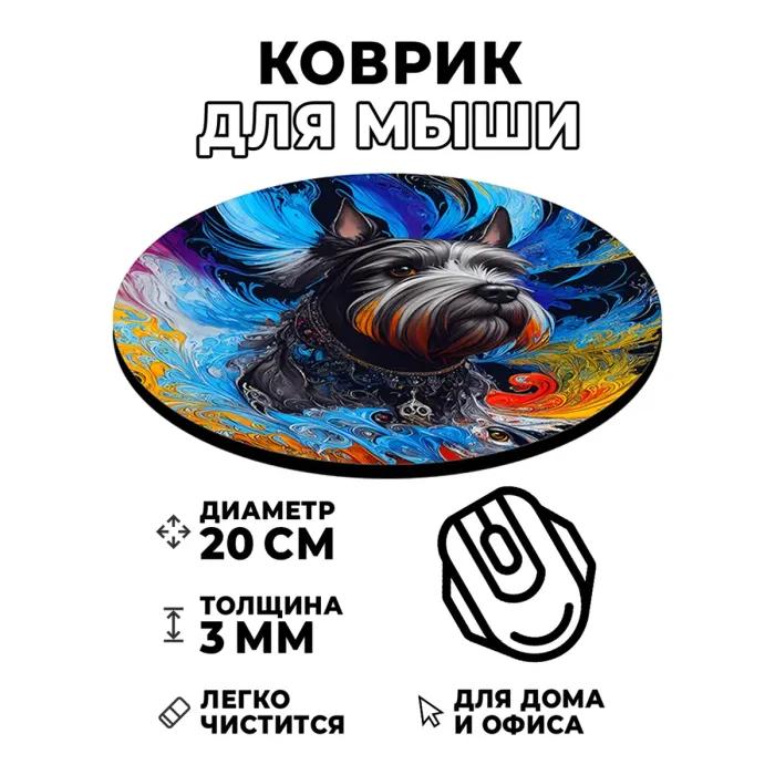 Коврик для компьютерной мыши с изображением собаки-терьера станет стильным дополнением рабочего места и подарит уют в офисе или дома. Этот аксессуар не только украшает стол, но и обеспечивает комфортное использование мышки благодаря хорошему скольжению.
