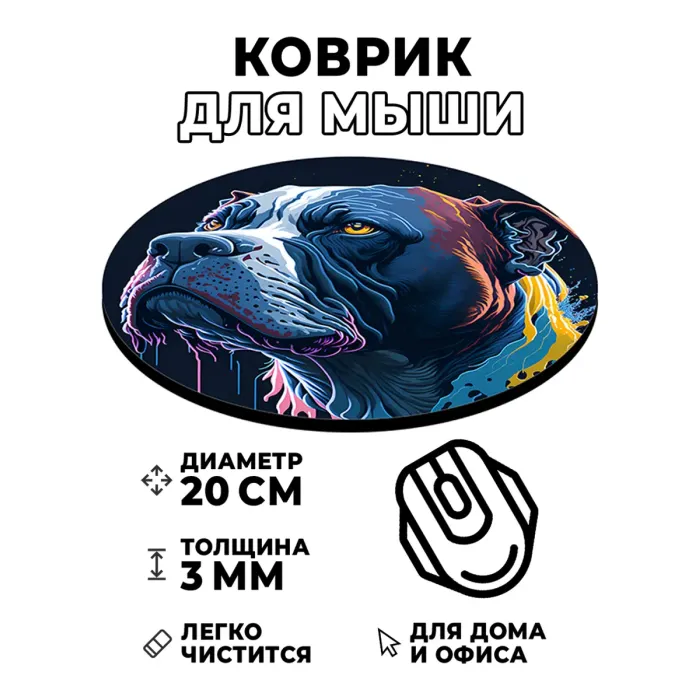 Коврик для компьютерной мышки с изображением собаки породы питбуль станет стильным и практичным дополнением рабочего места. Он не только украшает стол, но и создает комфортные условия для работы с мышкой.