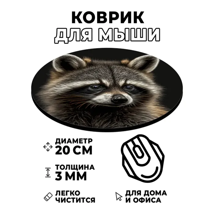 Коврик для мыши с изображением енота — это не только практичный аксессуар, но и стильный элемент рабочего пространства. Он придаёт индивидуальность и создаёт уютную атмосферу во время работы или игр.