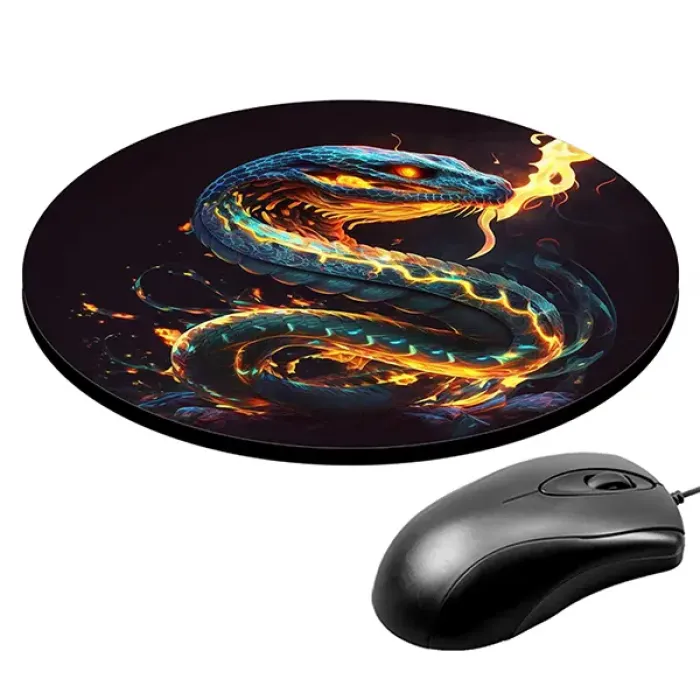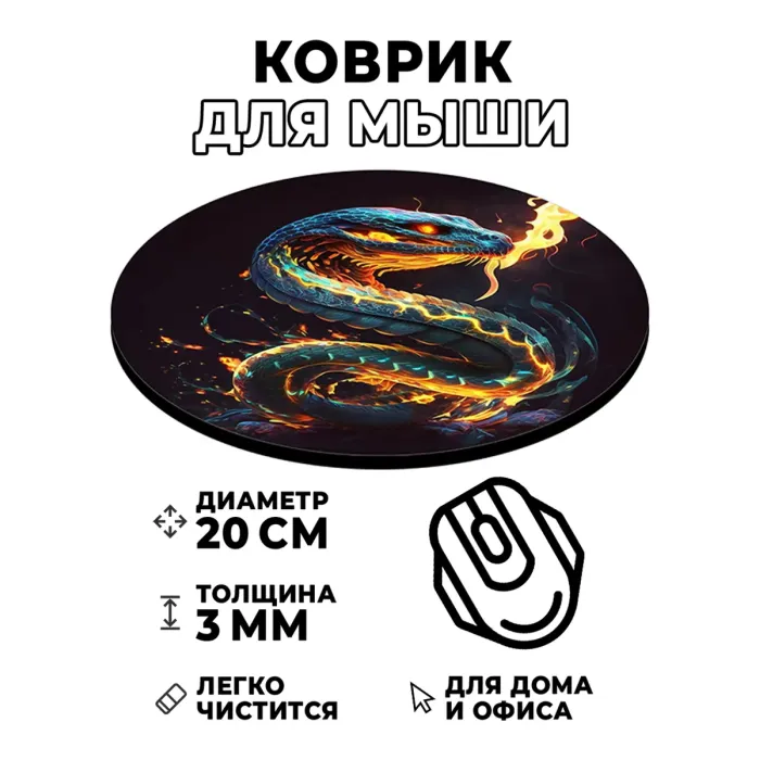 Коврик для компьютерной мыши с ярким изображением Огненной змеи станет стильным дополнением рабочего места. Этот аксессуар не только украшает, но и обеспечивает комфорт при использовании мышки благодаря хорошему скольжению.