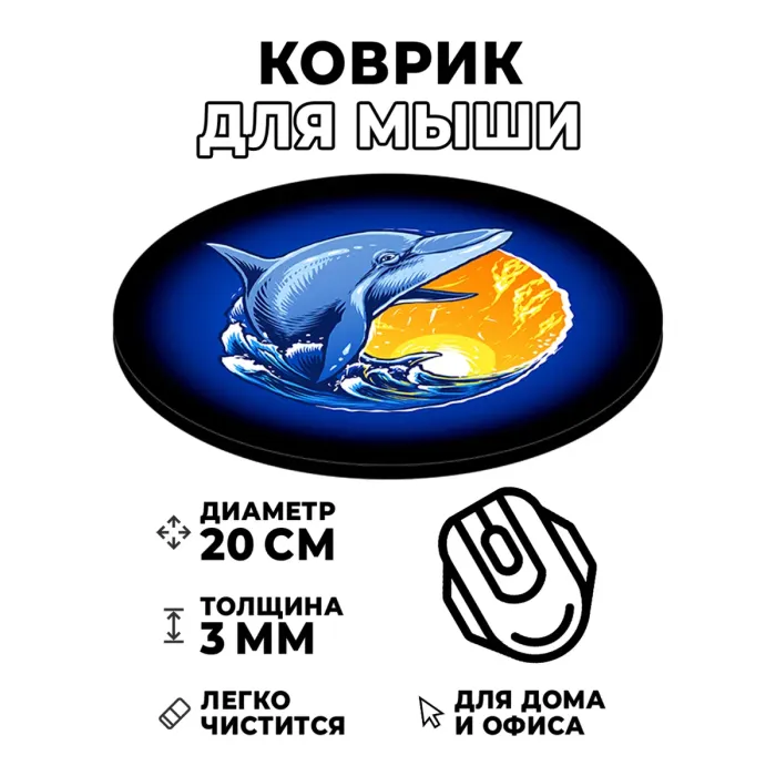 Коврик для компьютерной мыши с ярким изображением дельфина станет отличным дополнением рабочего места. Он не только украшает стол, но и обеспечивает комфортное использование мышки благодаря хорошему скольжению.