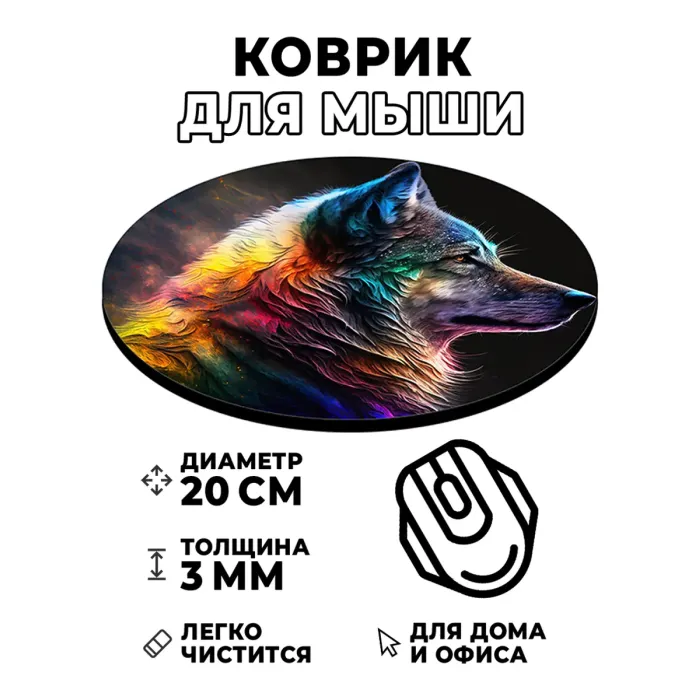 Коврик для мыши с изображением волка — это стильный и практичный аксессуар, который добавит индивидуальности рабочему месту. Он создан для комфортной работы за компьютером и станет отличным подарком для любителей природы.