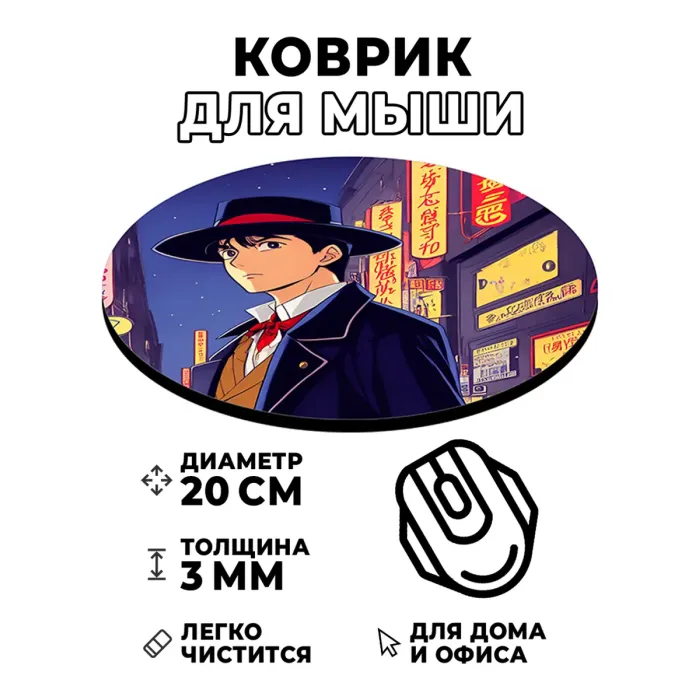 Коврик для компьютерной мышки с уникальным изображением, который станет отличным дополнением рабочего пространства и подарком для любителей аниме. Он имеет диаметр 20 см и толщину 3 мм, что обеспечивает комфортное использование.