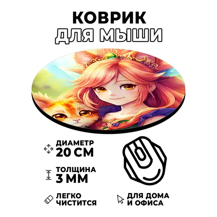 Коврик для компьютерной мыши с изображением аниме девушки и кошки — это стильный аксессуар, который добавит индивидуальности рабочему месту. Основное назначение коврика — обеспечить комфортное использование мыши и защитить поверхность стола от повреждений.