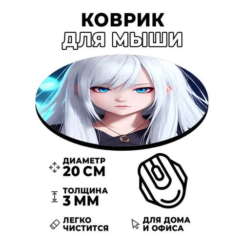 Коврик для компьютерной мыши с изображением аниме-девушки станет ярким акцентом рабочего места и подчеркнёт индивидуальность. Он выполнен из качественных материалов, обеспечивающих стойкое, чёткое и контрастное изображение. Диаметр коврика составляет 20 см, толщина — 3 мм, что гарантирует комфорт во время работы или игр. Благодаря отличному скольжению мышки, процесс использования становится более приятным и эффективным.