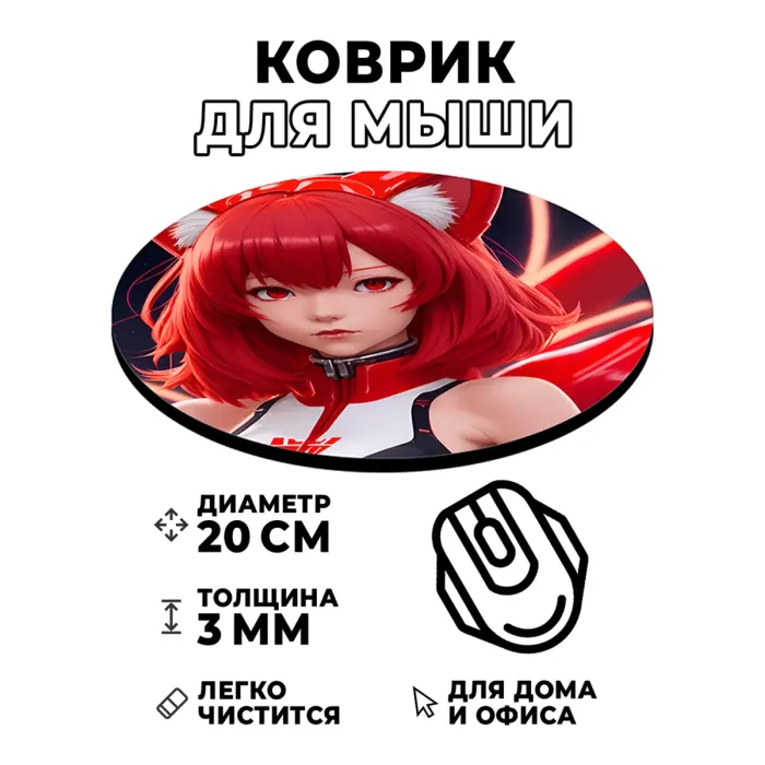 Коврик для мыши Аниме девушка кицунэ, d.20см KM0627