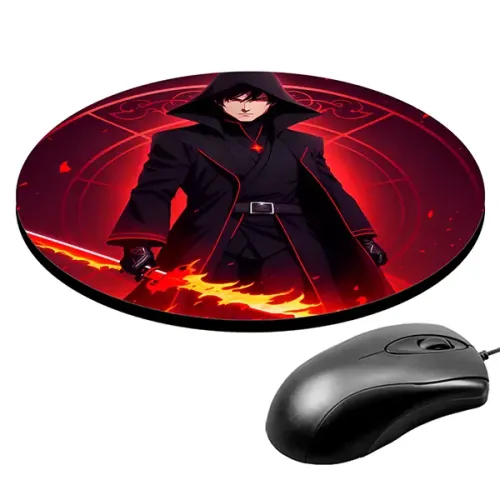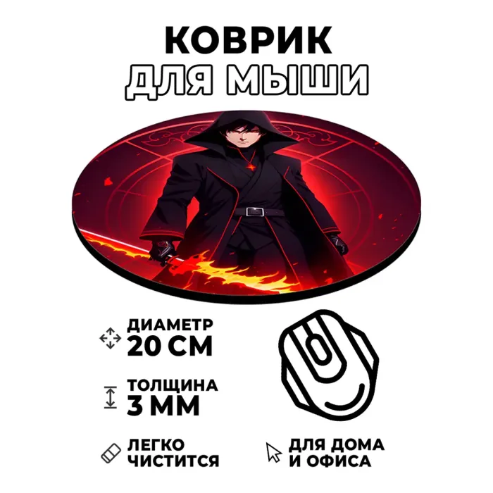 Коврик для мыши Аниме маг с огненным мечом, d.20см KM0637