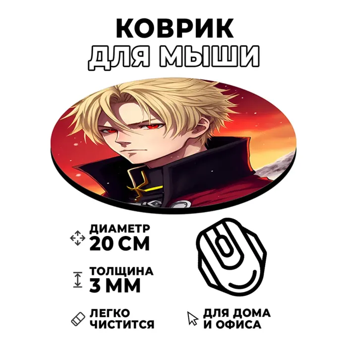 Коврик для компьютерной мыши с изображением в стиле аниме станет не только практичным аксессуаром, но и ярким элементом декора рабочего места. Он обладает стойким, четким и контрастным изображением, что придаёт ему уникальность. Диаметр коврика составляет 20 см, а толщина — 3 мм, обеспечивая комфортное использование и хорошее скольжение мышки. Этот продукт идеально подходит как для работы, так и для игр, добавляя атмосферу любимого аниме в повседневную жизнь.