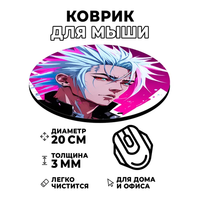 Коврик для компьютерной мышки с изображением в стиле аниме — это не только практичный аксессуар, но и яркое украшение рабочего пространства. С диаметром 20 см и толщиной 3 мм он идеально подходит для комфортного использования. Изображение на коврике отличается стойкостью, четкостью и контрастностью, что позволяет наслаждаться любимыми персонажами каждый день.