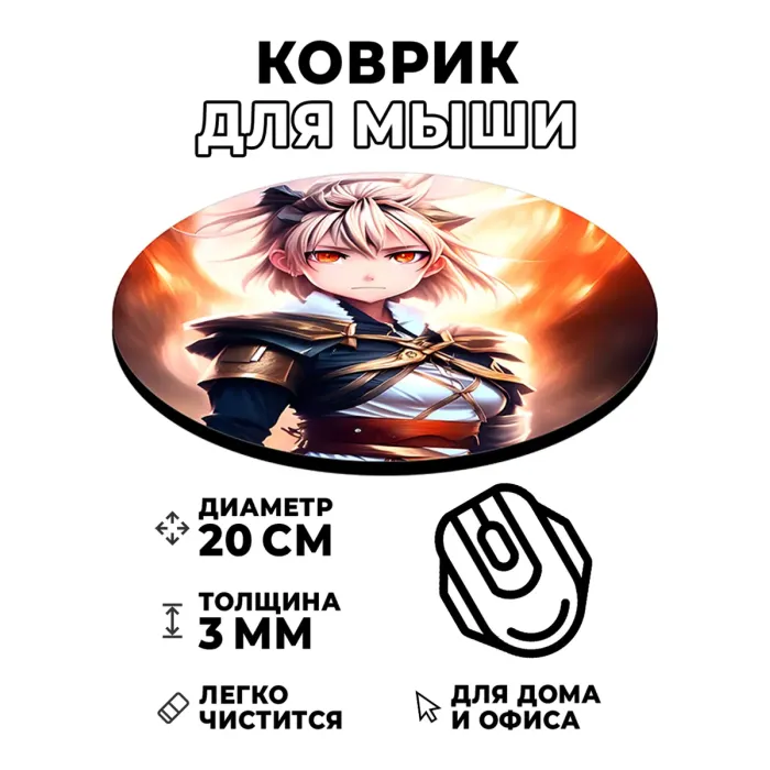 Коврик для компьютерной мышки с изображением аниме-девушки станет ярким акцентом на рабочем столе и добавит индивидуальности. С диаметром 20 см и толщиной 3 мм, он идеально подходит для комфортного использования. Стойкое и четкое изображение обеспечивает высокую контрастность, что делает его не только стильным, но и практичным аксессуаром. Коврик гарантирует отличное скольжение мышки, позволяя работать или играть без лишних усилий. Такой коврик станет прекрасным подарком любителям аниме и поклонникам оригинального дизайна.