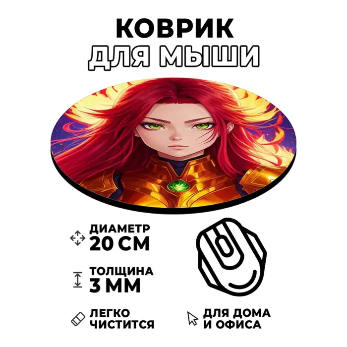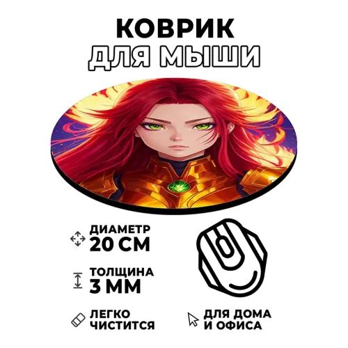 Коврик для компьютерной мыши с изображением, вдохновлённым миром аниме. Он станет не только практичным аксессуаром, но и стильным элементом рабочего пространства. С диаметром 20 см и толщиной 3 мм, коврик обеспечивает отличное скольжение мышки благодаря качественным материалам.