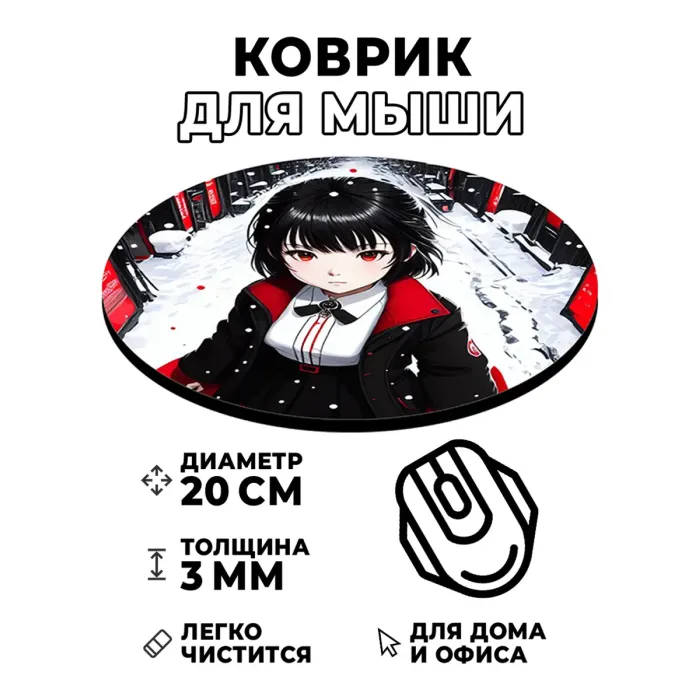 Коврик для компьютерной мыши с ярким изображением, который станет отличным дополнением рабочего места и подчеркнёт индивидуальность. Он имеет диаметр 20 см и толщину 3 мм, что обеспечивает комфорт в использовании.