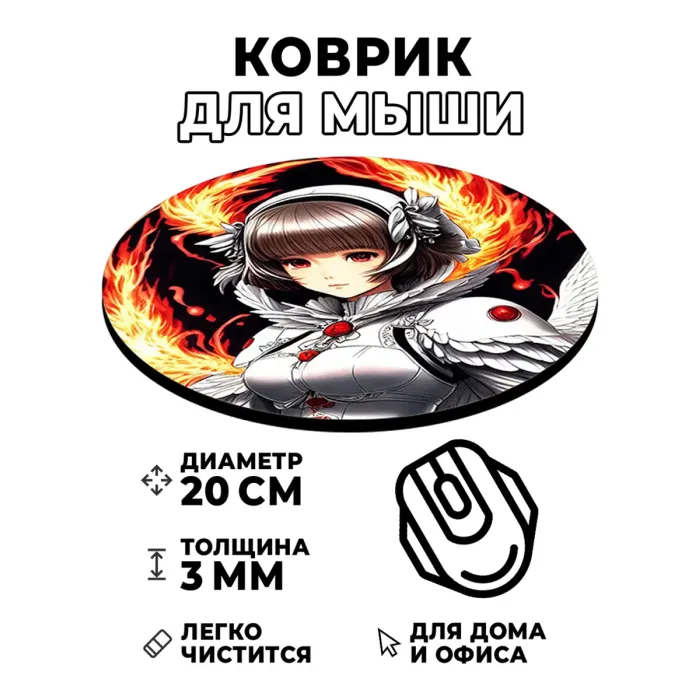 Коврик для компьютерной мыши с изображением девушки-ангела станет стильным дополнением рабочего места и порадует любителей аниме. Его диаметр составляет 20 см, а толщина — 3 мм, что обеспечивает комфортное использование. Изображение на коврике отличается стойкостью и четкостью, придавая ему яркий вид. Хорошее скольжение мышки гарантирует удобство в работе или игре, позволяя достичь высокой точности движений. Этот коврик не только функционален, но и добавляет индивидуальности в обстановку.