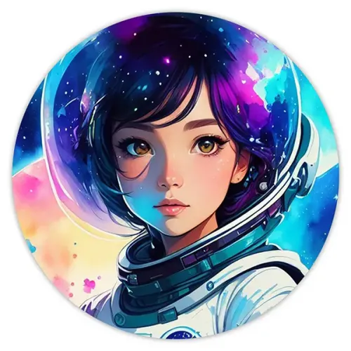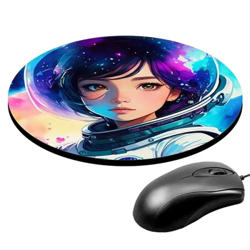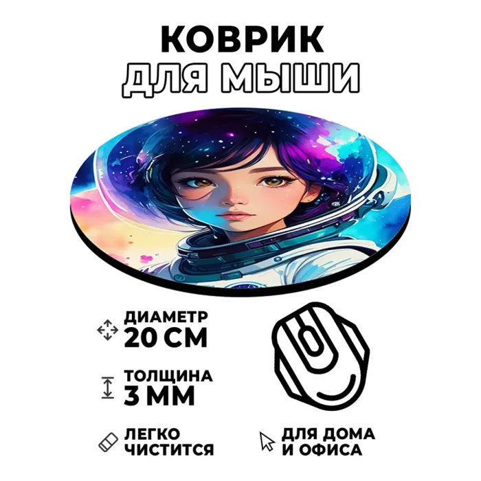 Коврик для компьютерной мыши круглой формы с изображением аниме-девушки в скафандре.