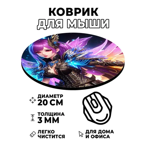 Коврик для компьютерной мыши с изображением девушки-феи станет ярким акцентом рабочего пространства и добавит индивидуальности в повседневные задачи. Он не только украшает стол, но и обеспечивает комфортное использование мышки благодаря своим характеристикам.