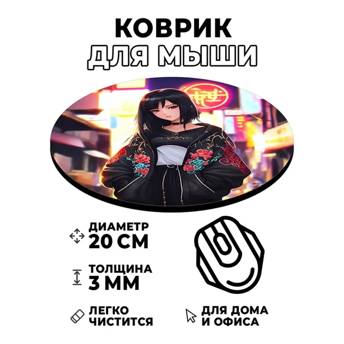 Коврик для компьютерной мышки с изображением аниме-девушки станет отличным дополнением рабочего места и подарит вдохновение в процессе работы или игры. Он выполнен из качественных материалов, что обеспечивает долговечность и яркость изображения.