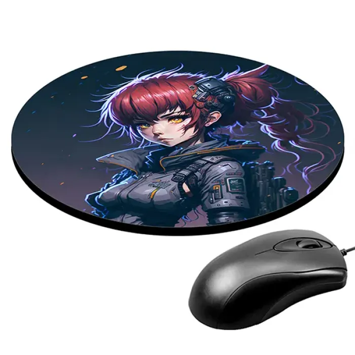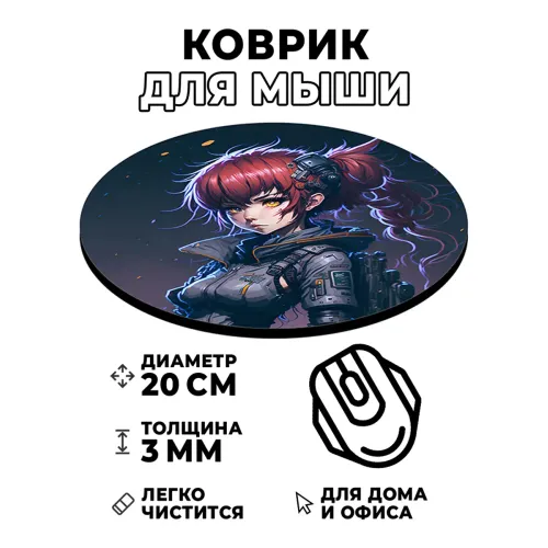 Коврик для компьютерной мыши с уникальным изображением в стиле киберпанк и аниме. Этот стильный аксессуар не только украсит рабочее пространство, но и обеспечит комфорт во время работы или игр. Диаметр коврика составляет 20 см, а толщина — 3 мм, что гарантирует отличное скольжение мышки и долговечность использования.